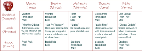 The Crayon Box Preschool provides breakfast, lunch, and an afternoon snack. For everyone's safety, we are a nut free school. Below is a sample menu for a given week. Click here to see the January menu.